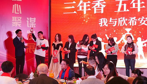 風雨同舟,有幸榮焉。“三年香、五年醇、十年陳,我與欣希安共成長”是對兢兢業業、辛勤耕耘三年、五年、十年的老員工的嘉獎。